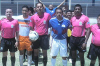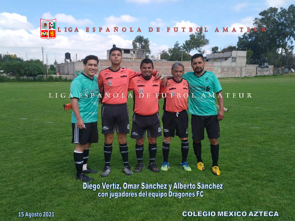 Diego Vertíz, Omar Sánchez y Alberto Sánchez con jugadores de Dragones FC         Deysi Martínez, Omar Sánchez y  Alberto Mendoza   Colegio de árbitros DF