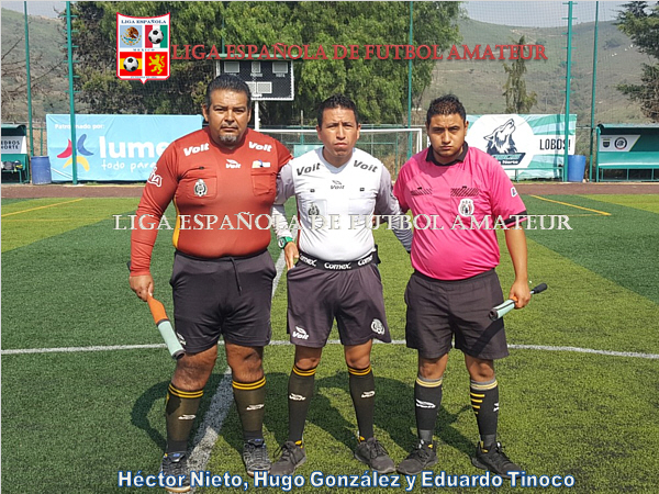 Rodolfo Estevez, Gabriel Farias y Mariana Cano    Jesús Carmona, Eder Espino, Fernando Santana y Citlalic Rodarte       Raúl Mendoza, Oswaldo Pérez y Roberto Camara   Árbitro Ajusco SF