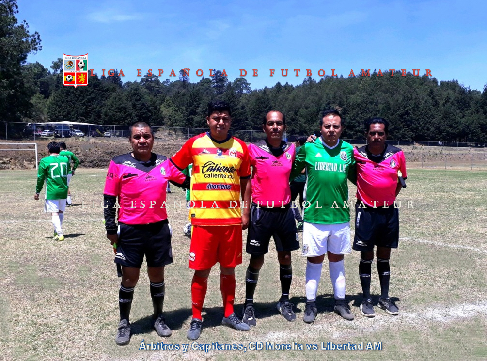 Árbitros y capitanes, CD Morelia vs Libertad AM     Deysi Martínez Zúñiga, Omar Sánchez Orta y Raúl García Olmos