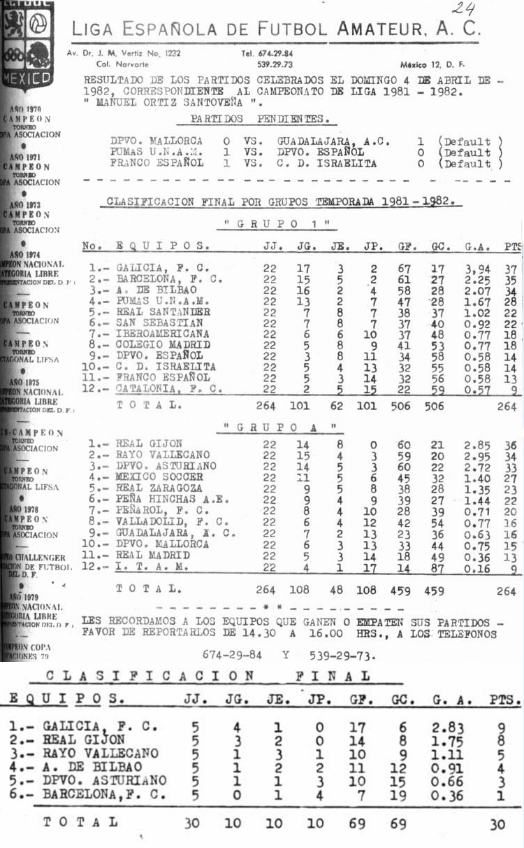 EQUIPOS PARTICIPANTES EN LA TEMPORADA 1981-82