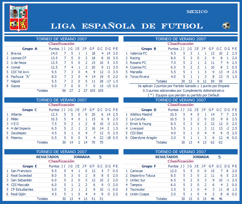 CLASIFICACIONES Y RESULTADOS DE LA TEMPORADA 2007