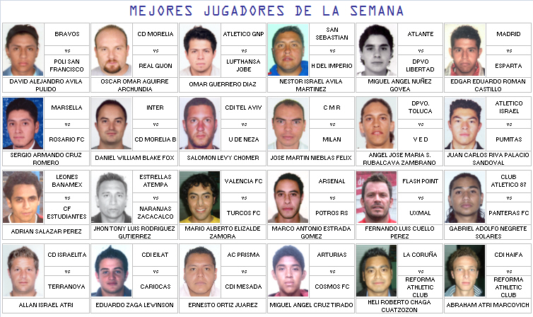 En esta página de mostrarán las fotografías de los mejores jugadores de la Jornada, según las calificaciones reportadas por el Cuerpo Arbitral.