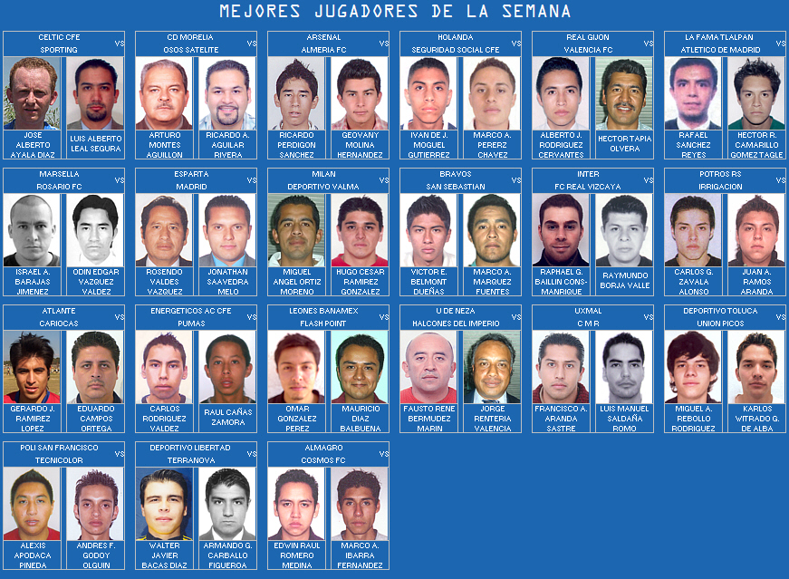 En esta página de mostrarán las fotografías de los mejores jugadores de la Jornada, según las calificaciones reportadas por el Cuerpo Arbitral.