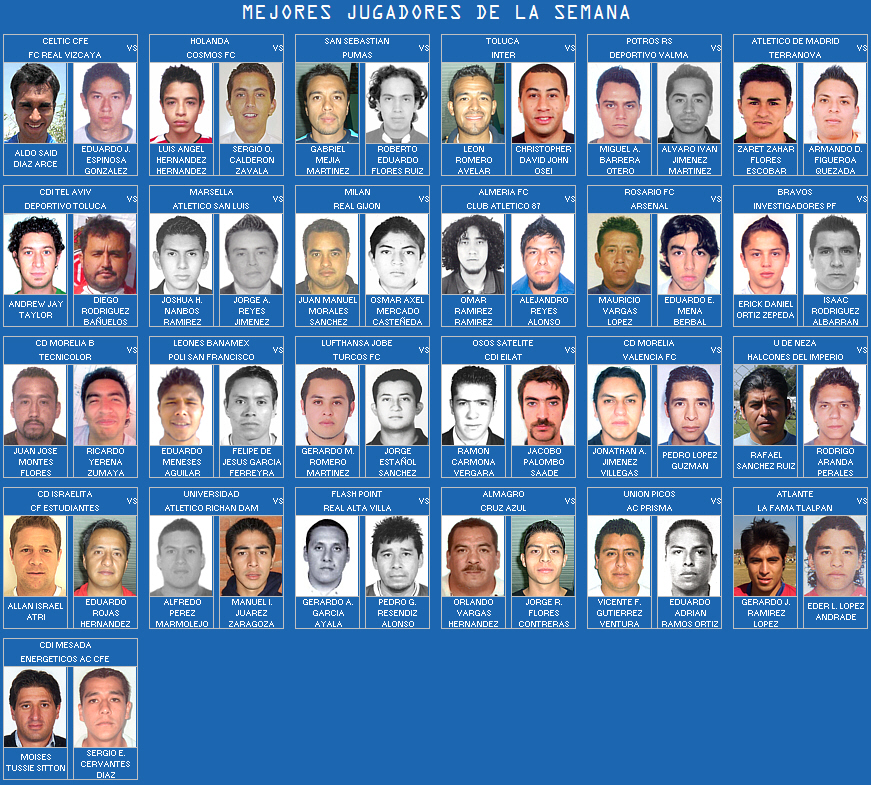 En esta página de mostrarán las fotografías de los mejores jugadores de la Jornada, según las calificaciones reportadas por el Cuerpo Arbitral.