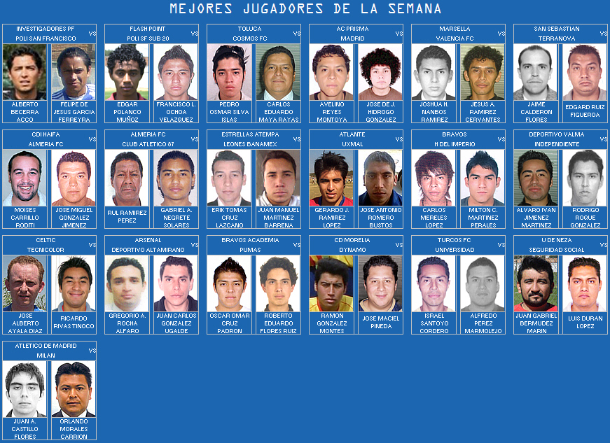 En esta página se mostrarán las fotografías de los mejores jugadores de la Jornada, según las calificaciones reportadas por el Cuerpo Arbitral.