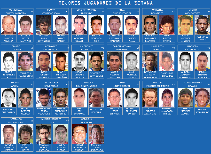 En esta página se mostrarán las fotografías de los mejores jugadores de la Jornada, según las calificaciones reportadas por el Cuerpo Arbitral.