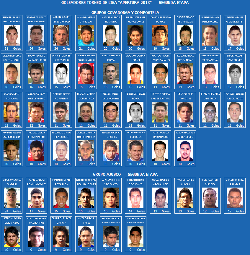 GOLEADORES DEL TORNEO DE LIGA "APERTURA 2013"